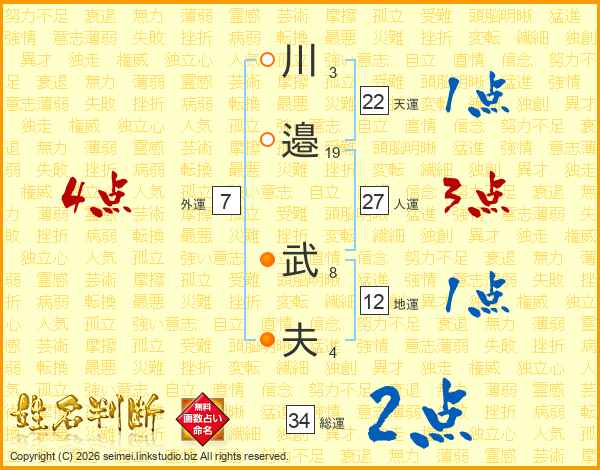 川(3画)邉(19画) 武(8画)夫(4画)