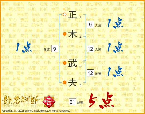 正(5画)木(4画) 武(8画)夫(4画)