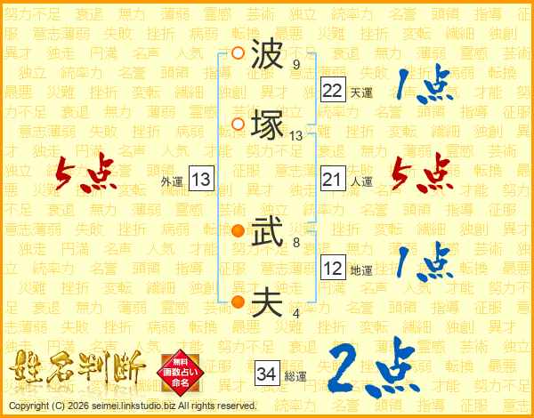 波塚武夫さんの天運は22画の1点!