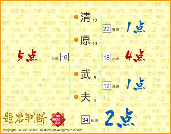 清原武夫さんの総運は34画の2点!