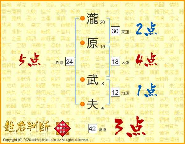 瀧原武夫さんの総運は42画の3点!