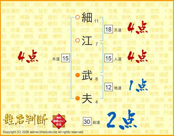 細(11画)江(7画) 武(8画)夫(4画)