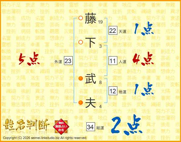 藤(19画)下(3画) 武(8画)夫(4画)