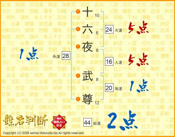 十六夜武尊さんの総運は44画の2点!
