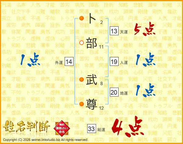 卜部武尊さんの総運は33画の4点!