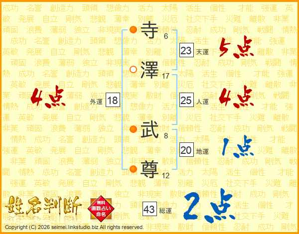 寺(6画)澤(17画) 武(8画)尊(12画)