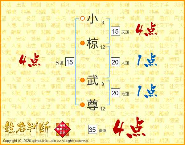小椋武尊さんの総運は35画の4点!