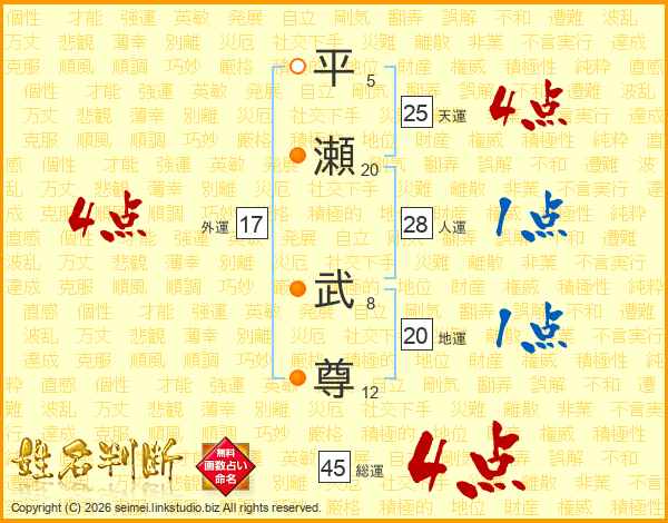 平瀬武尊さんの総運は45画の4点!