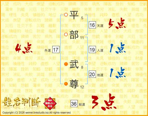 平部武尊さんの総運は36画の3点!