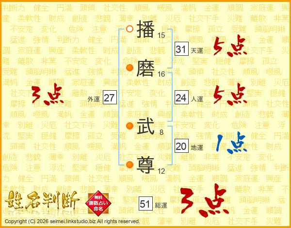 播磨武尊さんの総運は51画の3点!