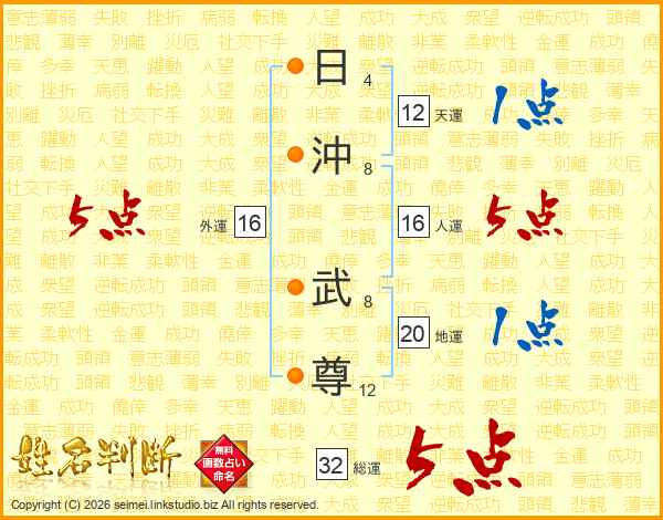 日沖武尊さんの総運は32画の5点!