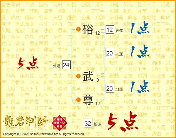 硲武尊さんの総運は32画の5点!