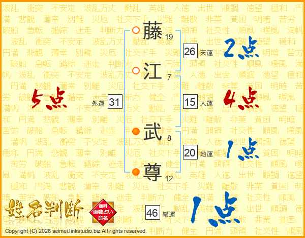 藤江武尊さんの総運は46画の1点!