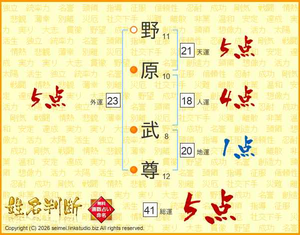 野原武尊さんの総運は41画の5点!