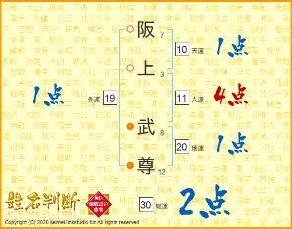 阪上武尊さんの人運は11画の4点!