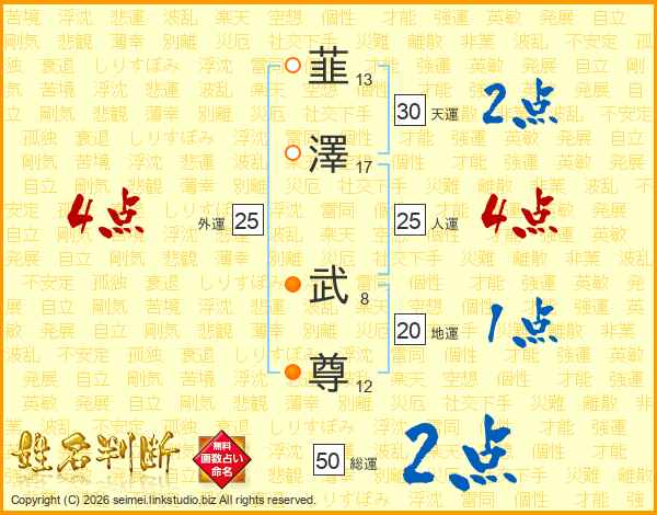 韮(13画)澤(17画) 武(8画)尊(12画)
