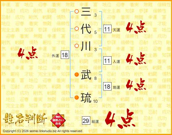 三(3画)代(5画)川(3画) 武(8画)琉(10画)