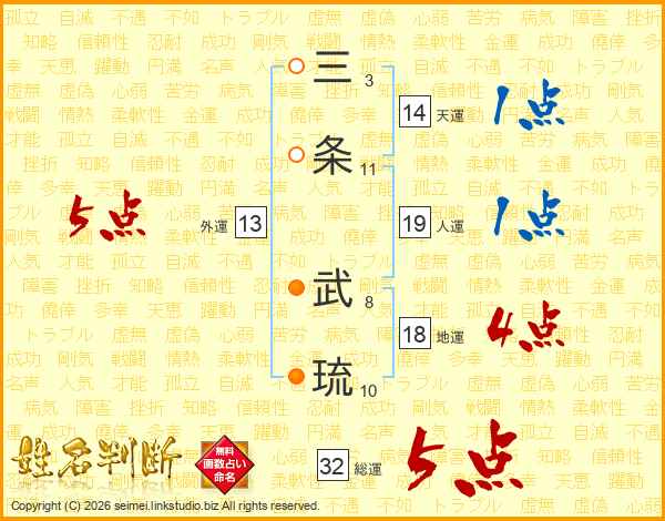 三条武琉さんの総運は32画の5点!