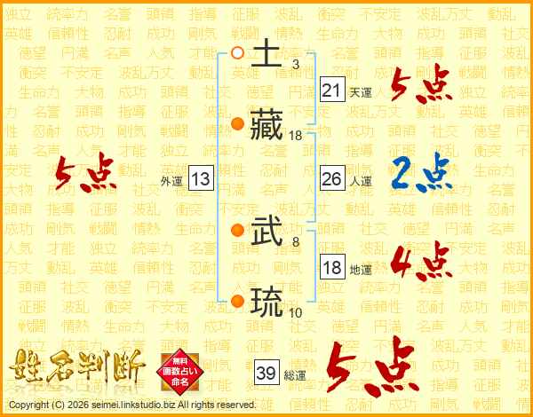 土藏武琉さんの総運は39画の5点!
