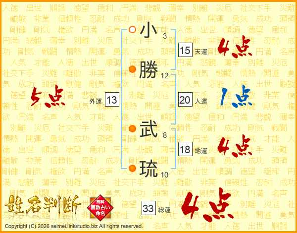 小勝武琉さんの総運は33画の4点!