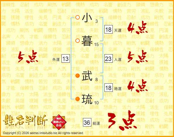 小暮武琉さんの総運は36画の3点!