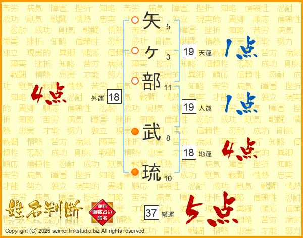 矢ヶ部武琉さんの総運は37画の5点!