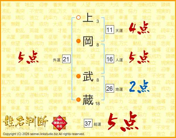 上岡武蔵さんの総運は37画の5点!