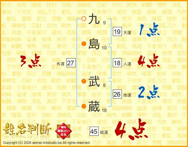 九島武蔵さんの総運は45画の4点!