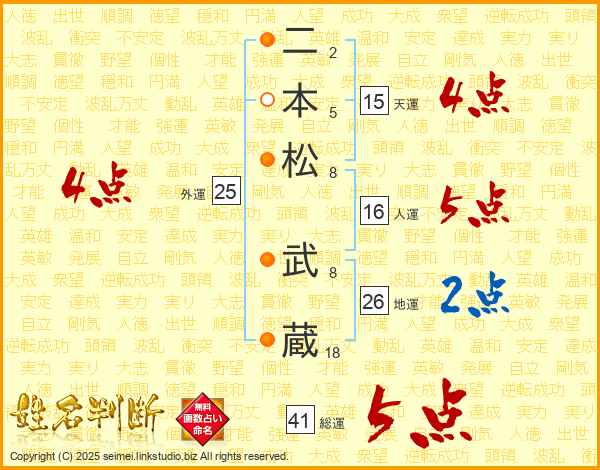 二本松武蔵さんの総運は41画の5点!