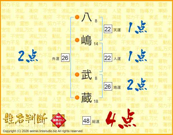 八嶋武蔵さんの総運は48画の4点!
