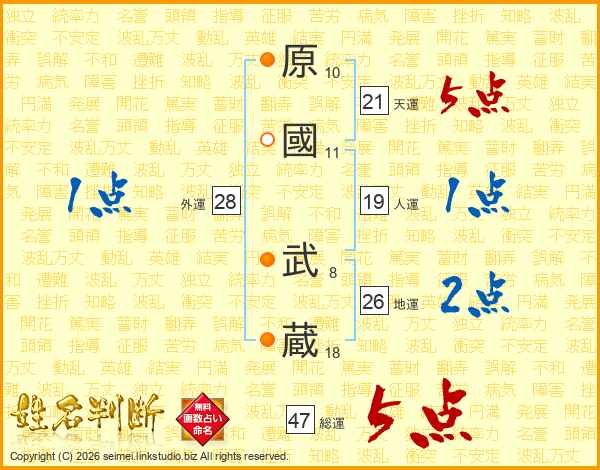 原國武蔵さんの総運は47画の5点!