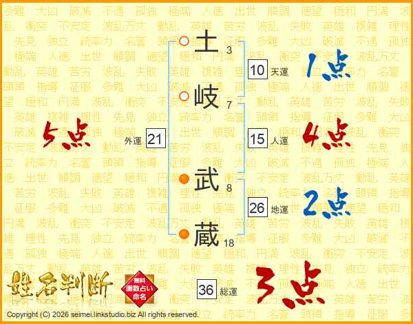 土岐武蔵さんの地運は26画の2点!