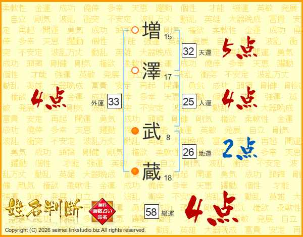 増澤武蔵さんの総運は58画の4点!