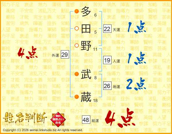 多田野武蔵さんの総運は48画の4点!