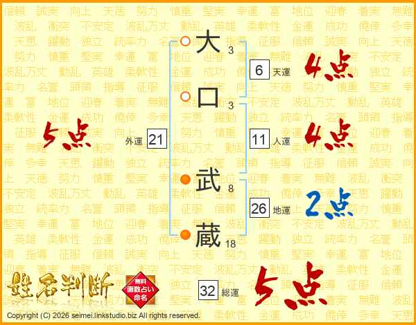 大口武蔵さんの地運は26画の2点!