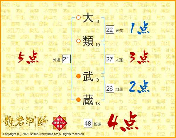 大類武蔵さんの総運は48画の4点!