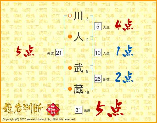川人武蔵さんの総運は31画の5点!