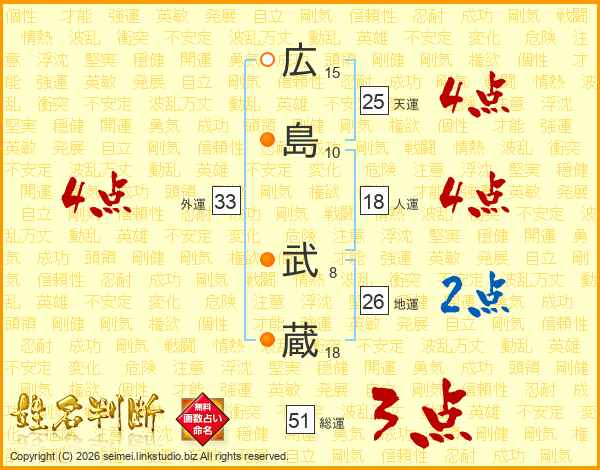 広島武蔵さんの総運は51画の3点!