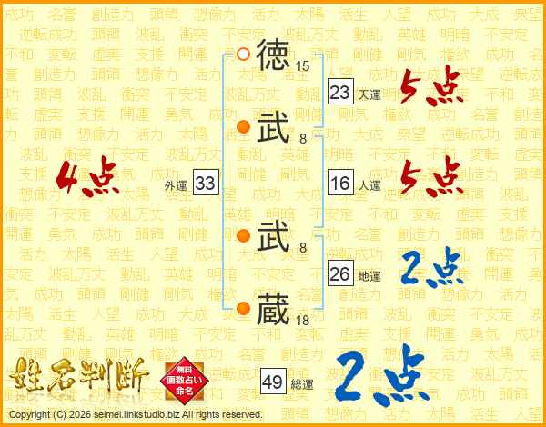 徳武武蔵さんの総運は49画の2点!