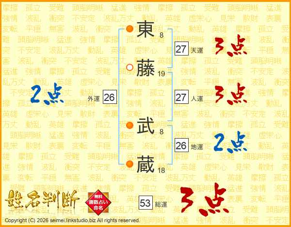 東藤武蔵さんの総運は53画の3点!