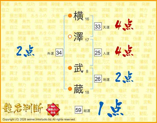 横澤武蔵さんの地運は26画の2点!
