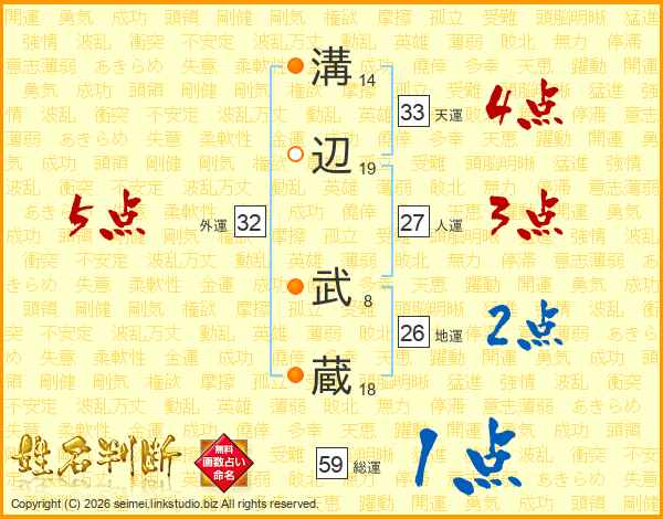 溝(14画)辺(19画) 武(8画)蔵(18画)