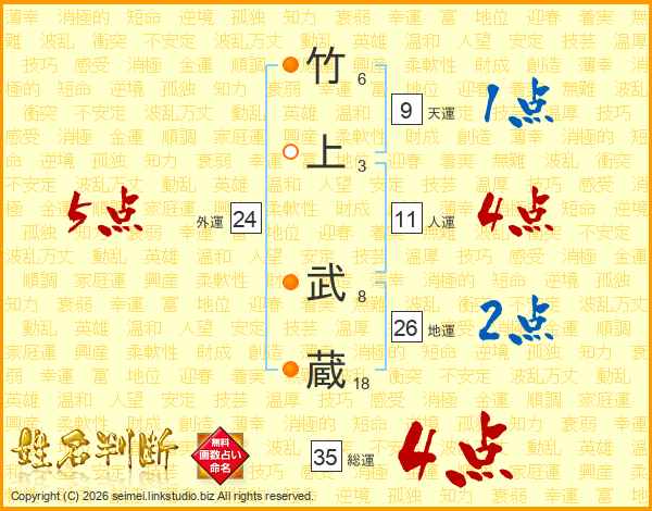 竹上武蔵さんの地運は26画の2点!