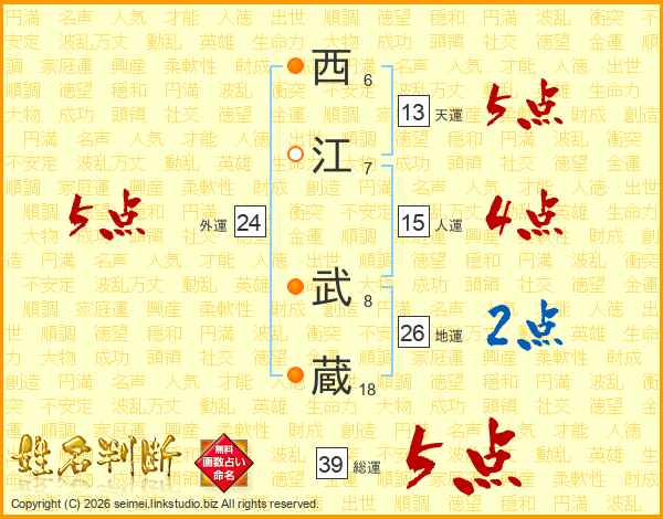 西江武蔵さんの総運は39画の5点!