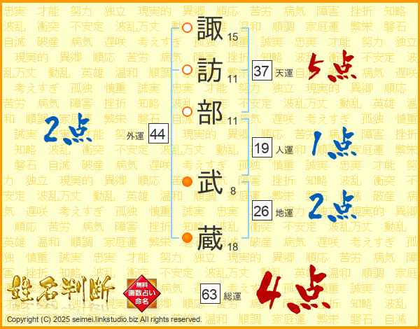 諏(15画)訪(11画)部(11画) 武(8画)蔵(18画)