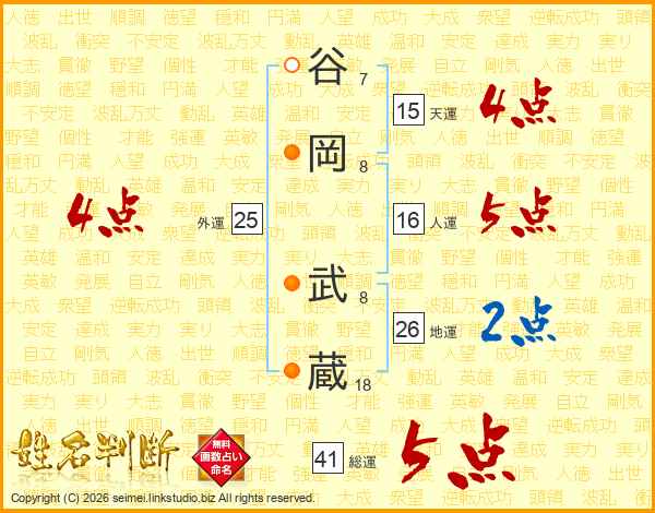 谷岡武蔵さんの総運は41画の5点!