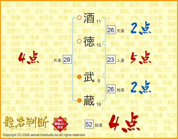 酒徳武蔵さんの天運は26画の2点!