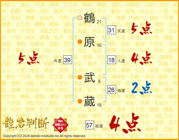 鶴原武蔵さんの総運は57画の4点!