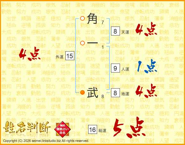 角一武さんの総運は16画の5点!
