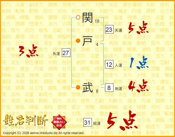関戸武さんの総運は31画の5点!